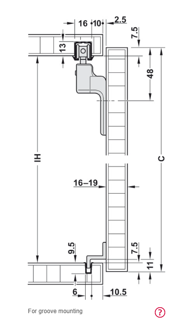 Häfele Slido F-Line21 20H, set
