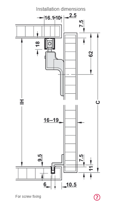 ✔ Εφαρμογή: για πόρτες Vorfront / overlay (η πόρτα επικαλύπτει το πλαίσιο) με soft-close ή κλιπ-in stop (ανάλογα με την έκδοση).