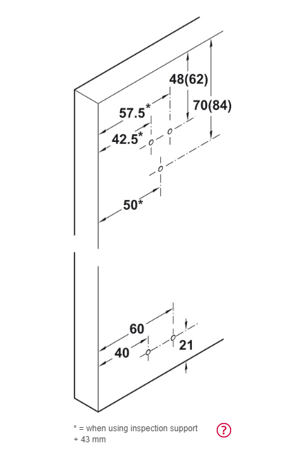 τουλάχιστον 245 mm όταν υπάρχει μηχανισμός soft-closing στη μία πλευρά