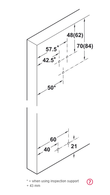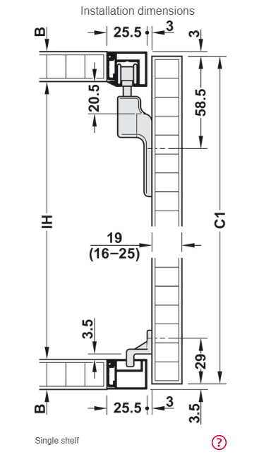 τουλάχιστον 245 mm όταν υπάρχει μηχανισμός soft-closing στη μία πλευρά