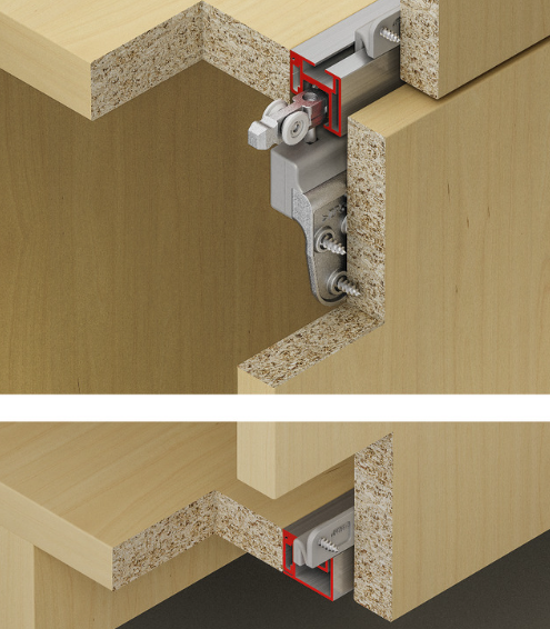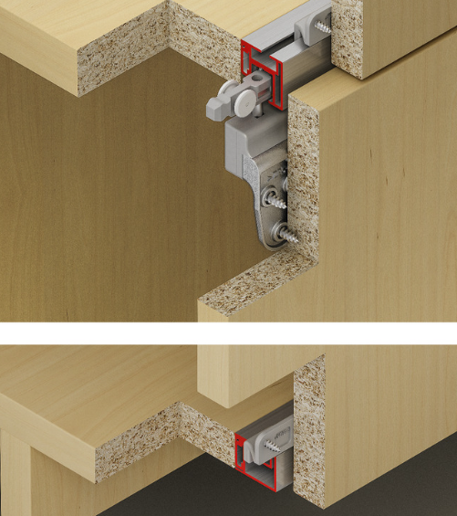 Οδηγοί & στοπ: Το σύστημα δέχεται clip-in ή soft/soft-close στοπ που «κουμπώνουν» στην κορυφή του οδηγού.