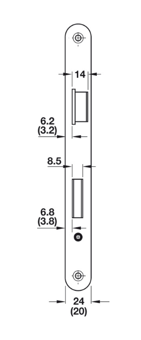 Αυτή η πλάκα είναι συμπληρωματικό εξάρτημα της κλειδαριάς — δεν λειτουργεί μόνη της. Τοποθετείται στο κάσα και δέχεται τα στοιχεία της κλειδαριάς ώστε να κλειδώνουν σωστά οι πόρτες.