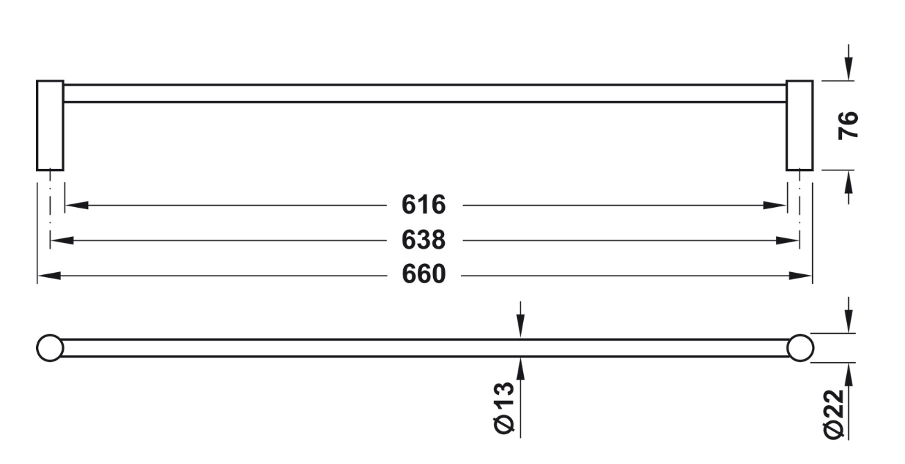 - Μήκος μπάρας: περίπου 600–660 mm
